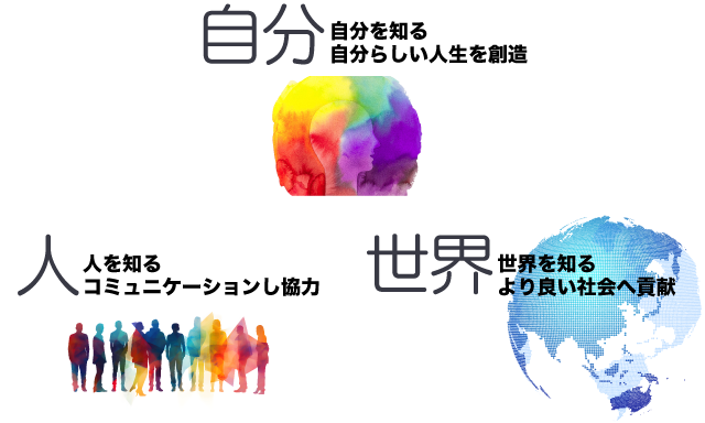 「自分」「人」「世界」の3つを知り、それぞれとコミュニケーションをとり、協力、貢献していく。これらは、教育の重要な役割です。