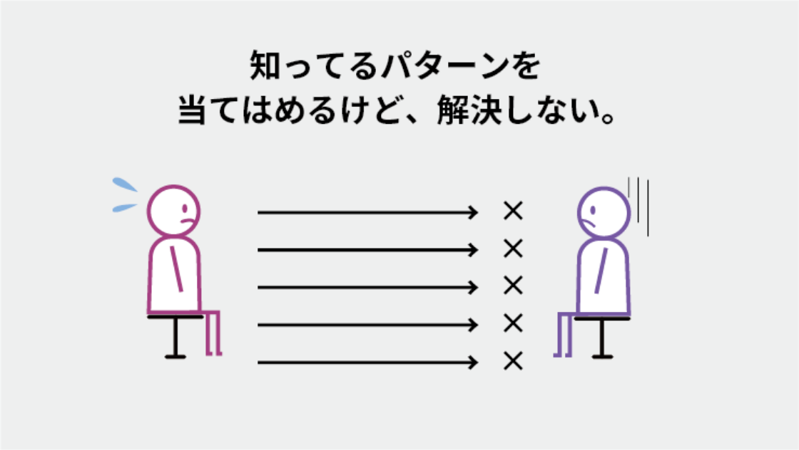 まずは白紙で共感しつつ、「寄り添って味方でいる」だけでは解決しない複雑な問題については、何が症状の要因であったかを見極め(現場検証)、パターンを見つけていきます。