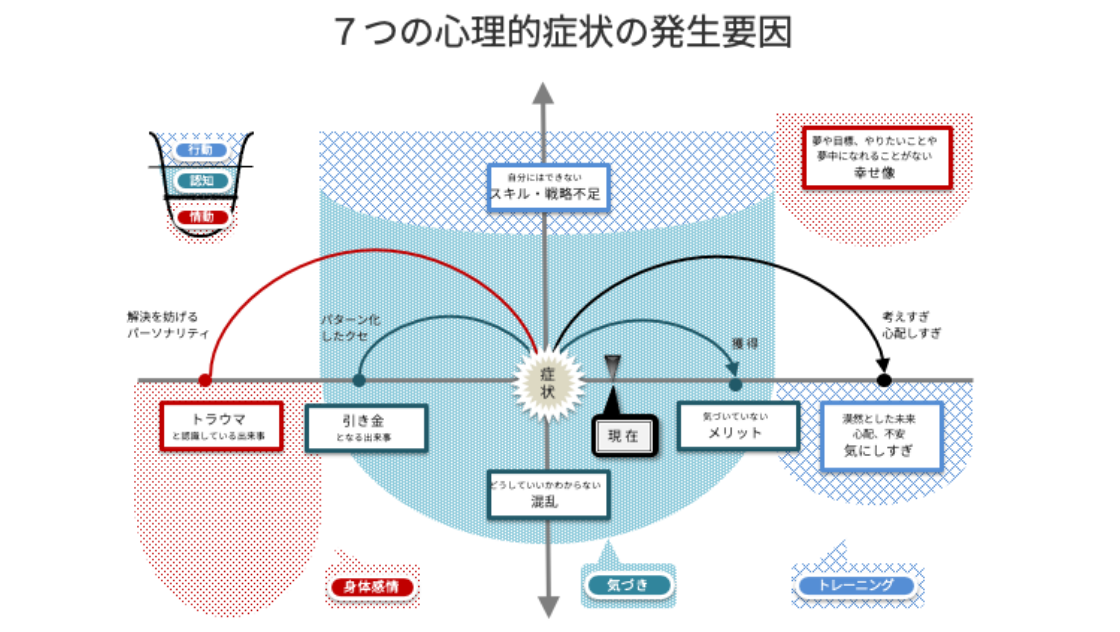 メンタル起因の症状には、大きく分けて7つの要因とそれぞれに対する適切なアプローチがあります。本コースでは、7つの要因すべてをカバーしながら、アプローチ方法を3つのレベル(行動、認知、情動)で使い分け、長年の悩みや突発的でコントロール不能な症状なども本質的な解決に至るカウンセリングの全容を学びます。