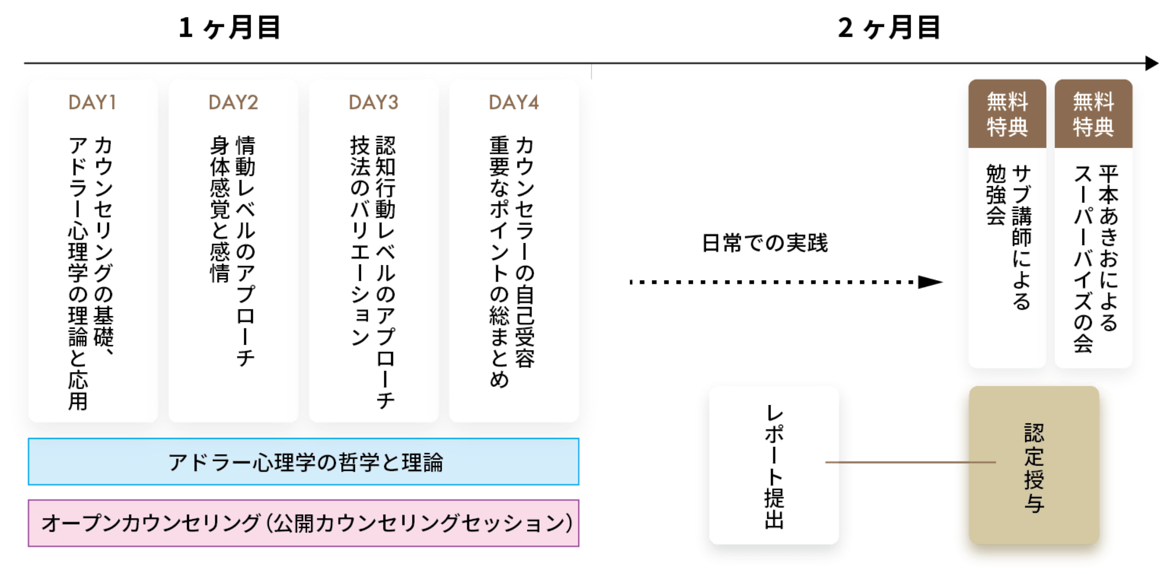 アドラー心理学、ソリューション・フォーカスド・セラピー、構成主義心理学、認知行動療法、NLPなど、様々な心理療法をすべて学ぶには、数年かけて数百万円かかるのが一般的です。それらを包括して体系的に学べるプログラムとして、タイムパフォーマンスやコストパフォーマンスを比較して選んでいただければと思います。