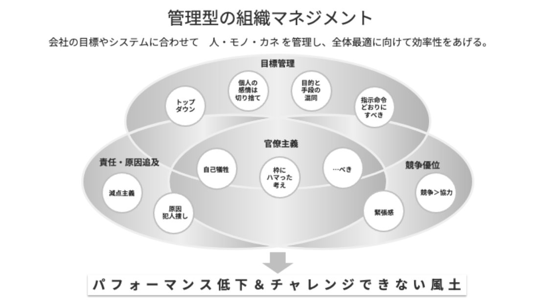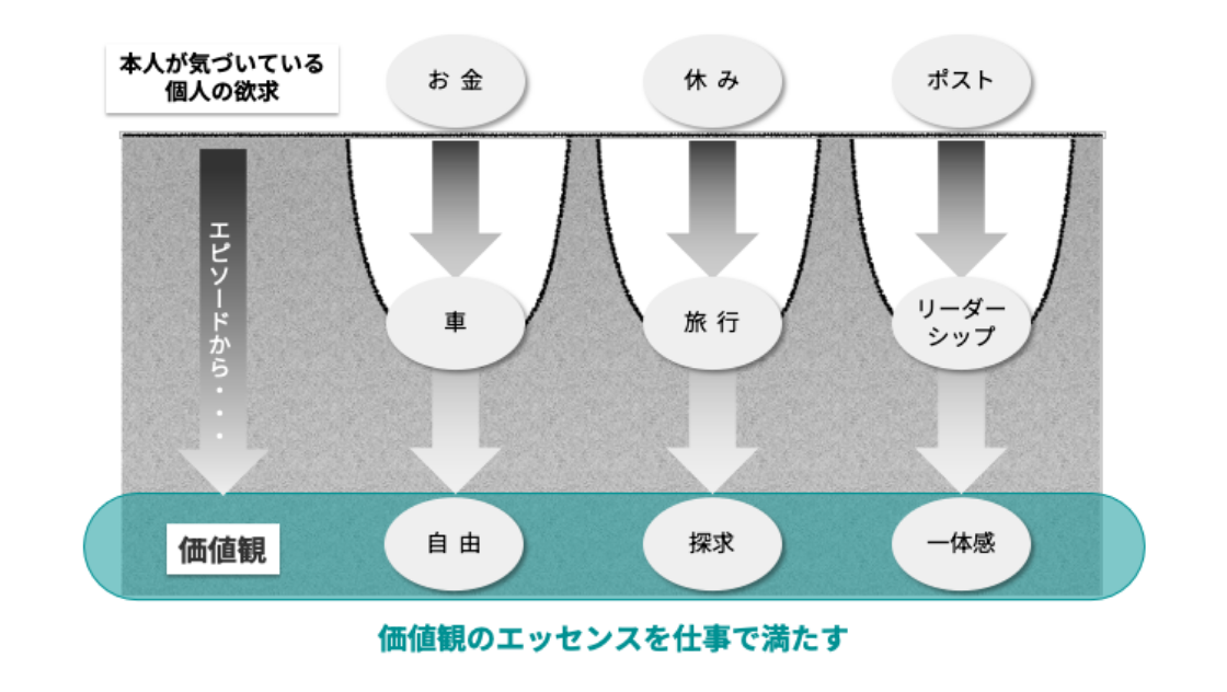 賞罰などで会社の思い通りに人をコントロールしようとしても、コストが多くかかる割には、人のやる気は続かず、圧倒的なパフォーマンスを引き出すこともできません。ですから、一人ひとりから、ワクワク感が止まらないような、感情が伴うやる気、つまり、「内的モチベーション」をもとに仕事のやりがいを持てるようサポートするだけで、仕事へのやる気が一気に変わります。個人の「内的モチベーション」は人それぞれ固有のものですが、チームや組織のミッションや業績と連動する目標設定をすることで、多様性のあるメンバーが、一体感を持って、目標に向けて自走できるようになります。