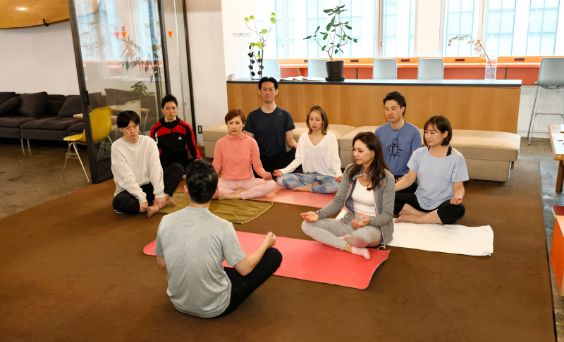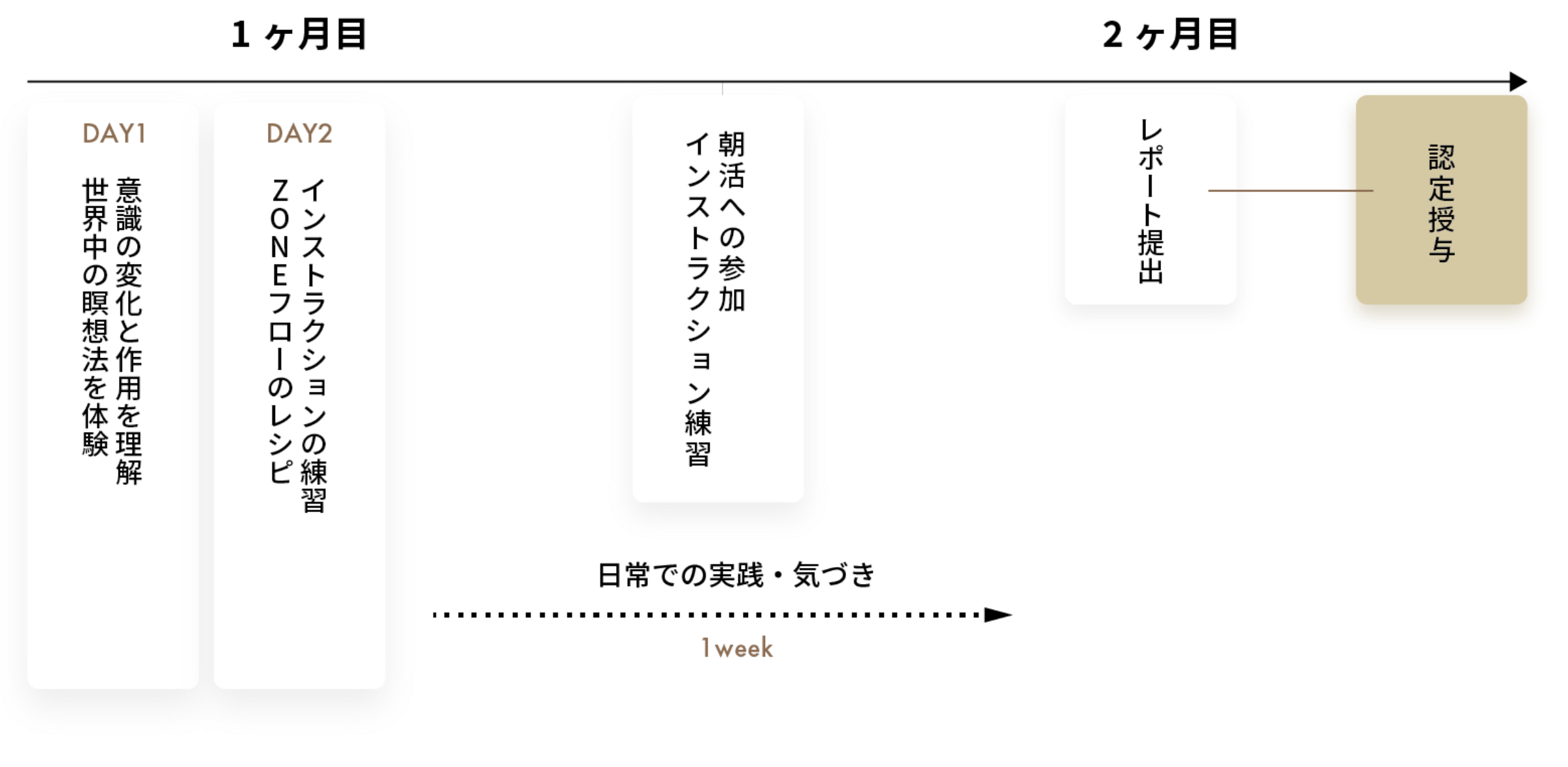 コース開催の翌週の1週間、毎朝、オンラインで、瞑想タイムを取ります。グループで実施し、瞑想インストラクションを持ち回りで受け持ちます。瞑想を日常の中ですることで、スキルが定着し、瞑想インストラクターとしても自信が持てるようになります。