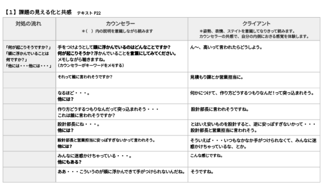 「問題解決の流れ」「カウンセリング領域」のセッションの進め方をスクリプト練習でマスター